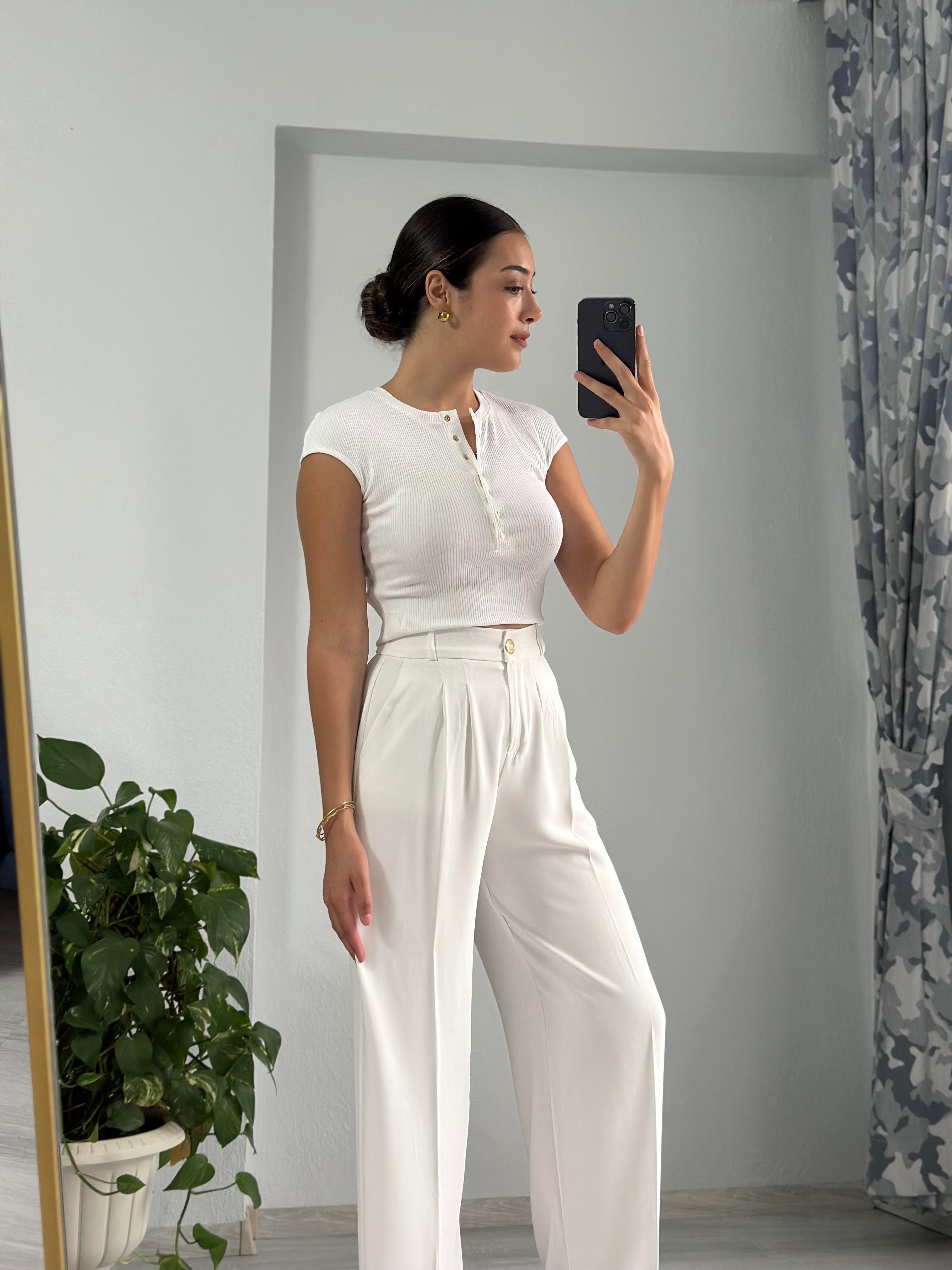 Gold düğmesi mevcuttur, uygun çamaşır ile iç göstermez, arka bel kısmı lastiklidir.
