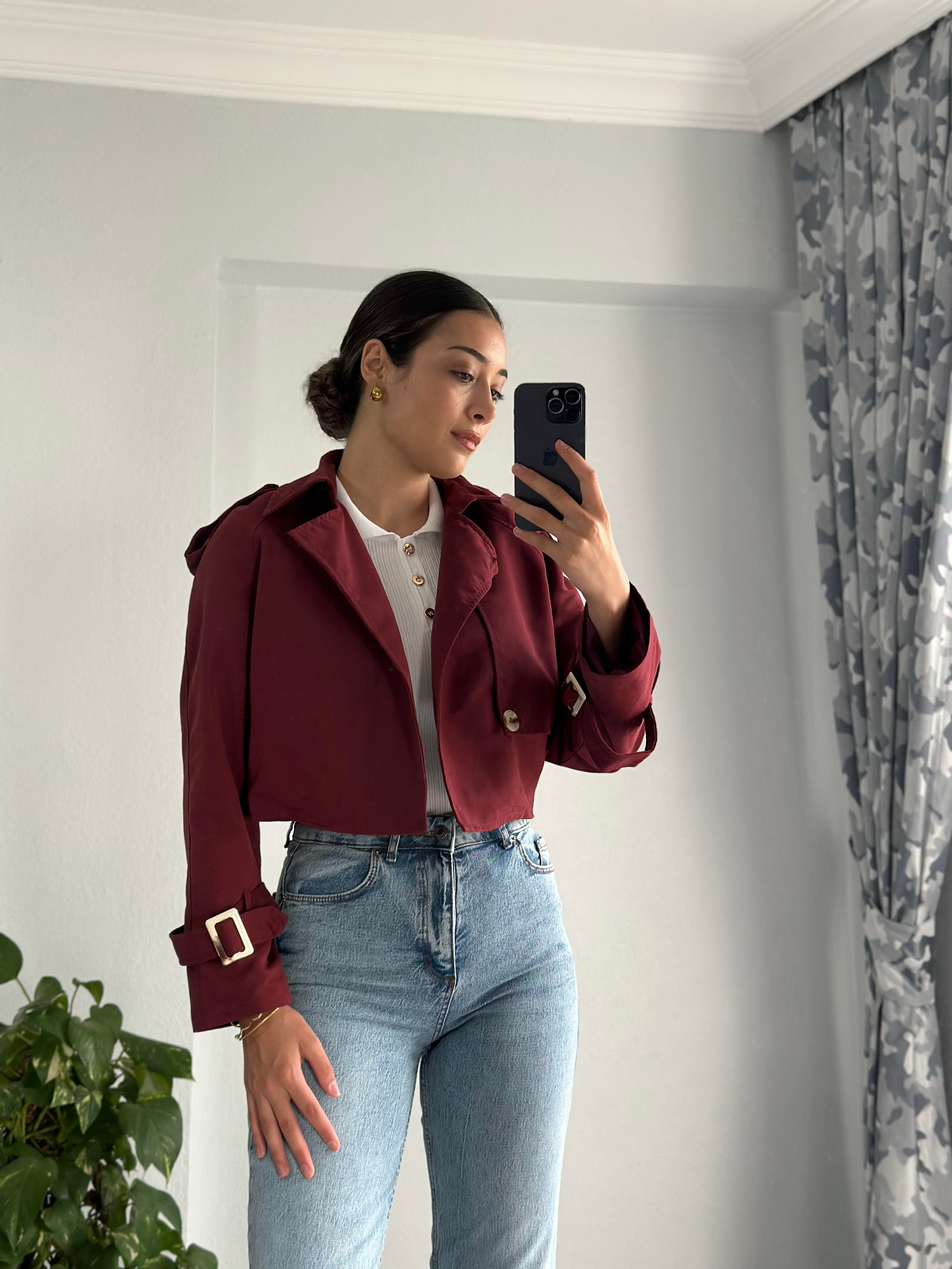 Uzun kollu, kolları kemerli, tek düğmeli, fermuarsız, astarlı