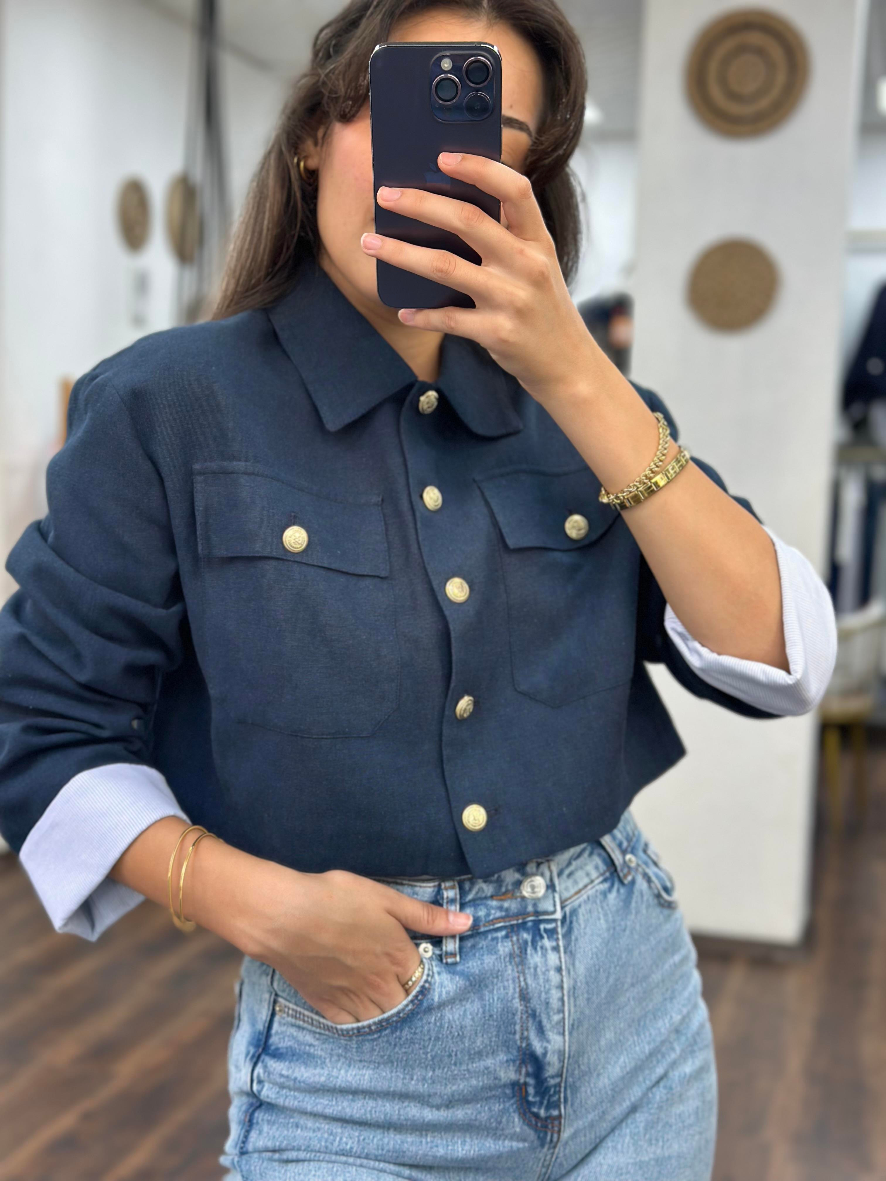 Gold düğmelidir. 2 adet cep bulunmaktadır. kemer boydur. İçi beyaz-lacivert çizgili astarlıdır.