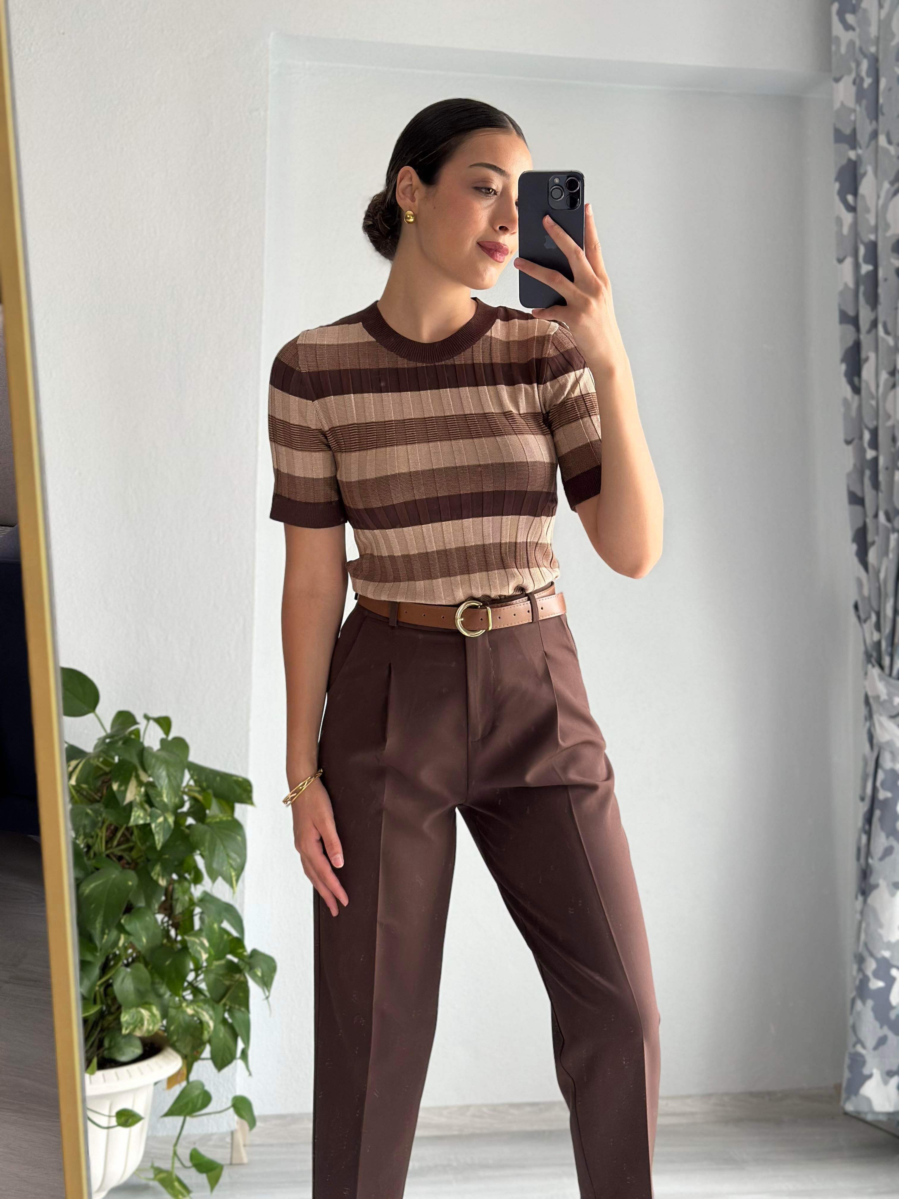 Kahverengi Havuç Kesim Kumaş Pantolon